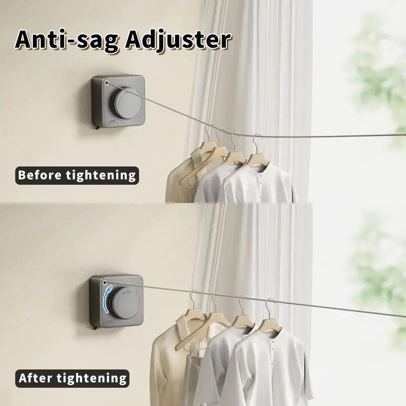 No. The clothesline features an anti-sag tension mechanism that keeps the line tight and secure, even when holding heavier loads.